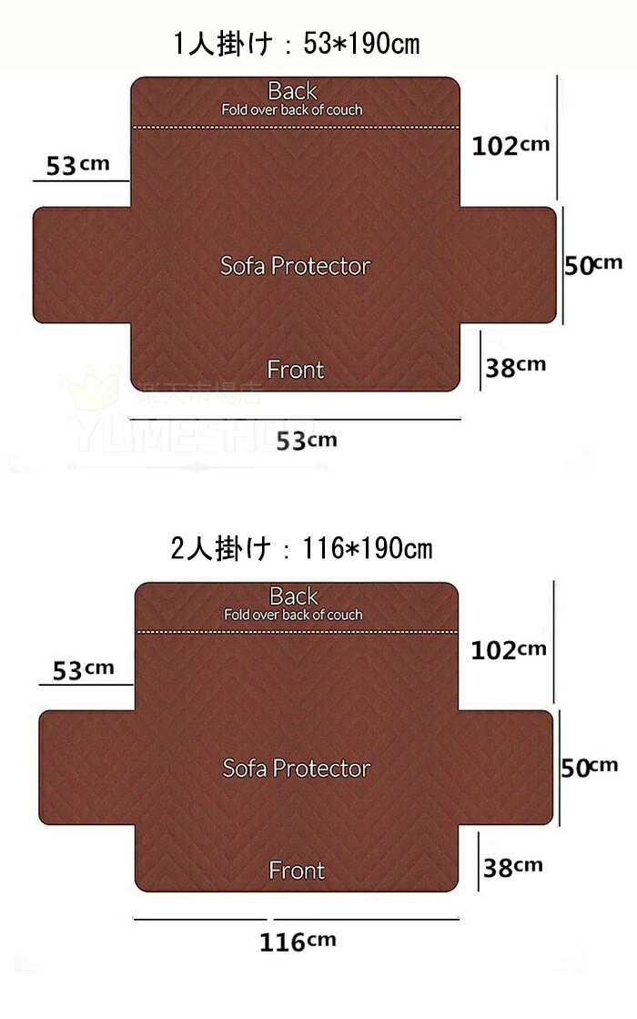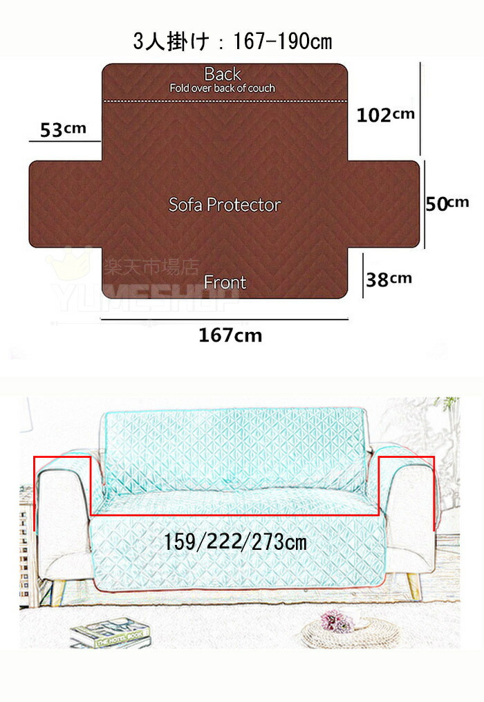 撥水加工 無地 ソファーカバー 全6色 薄いグリーン コーヒー ピンク ネイビー グレー ワインレッド 1人掛け(53*190cm)3680円 2人掛け(116*190cm)4300円 3人掛け(167*190cm)5100円