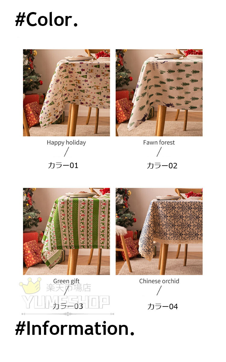 テーブルクロス クリスマス用 北欧 長 キッチン用品 食器 調理器具 早い者勝ち カラー01 カラー02 カラー03 カラー04 60*60CM 値段:1680円 90*90CM値段:1900円 90*140CM 値段:2300円 100*160CM値段:2400円 110*110CM値段:2500円 140*140CM値段:2600円 140*180CM値段:2800円 140*200CM値段:3000円 140*220CM値段:3200円 140*240CM値段:3300円 140*260CM値段:3400円 140*300CM値段:3500円