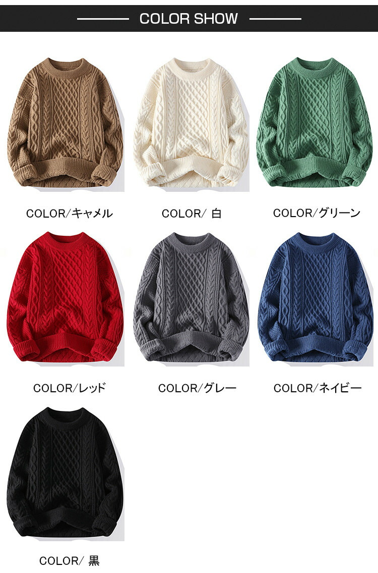 ケーブルニット メンズ セーター ニッ トップス ニット セーター 豊富な品揃え M L XL 2XL 3XL キャメル 白 グリーン レッド グレー ネイビー 黒