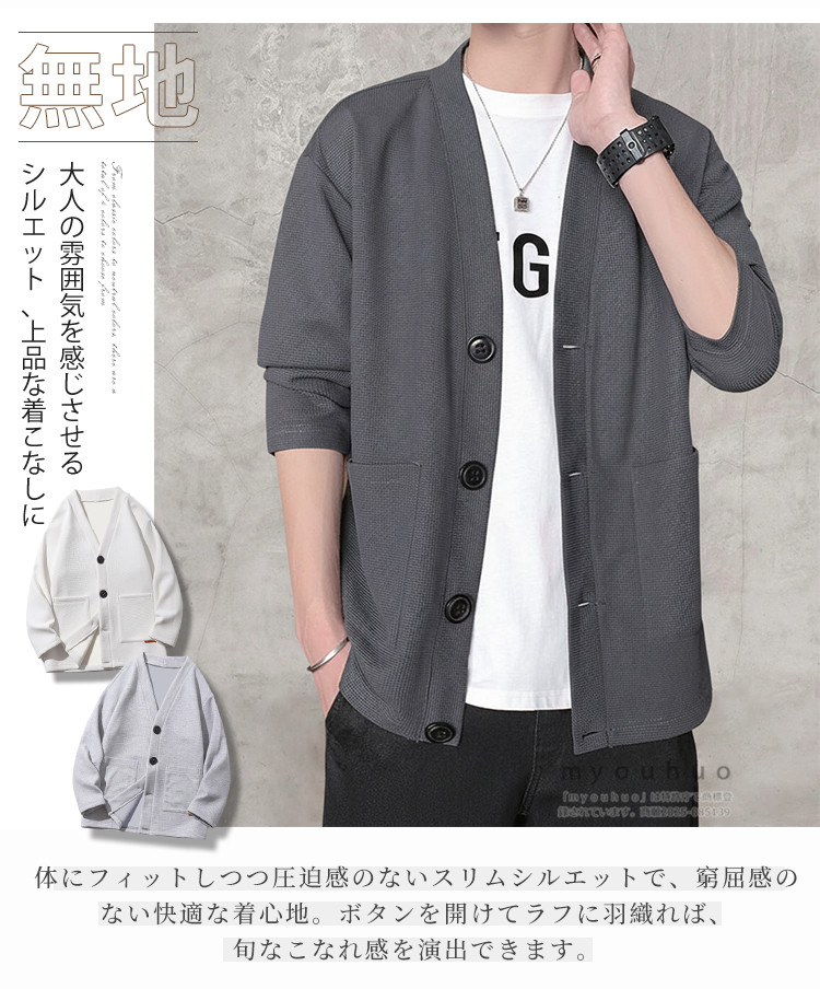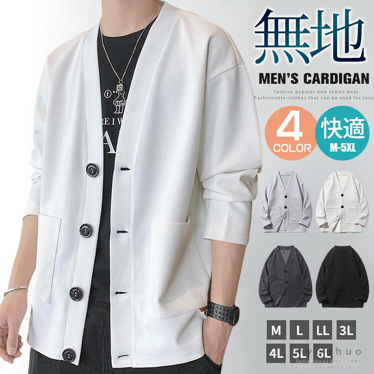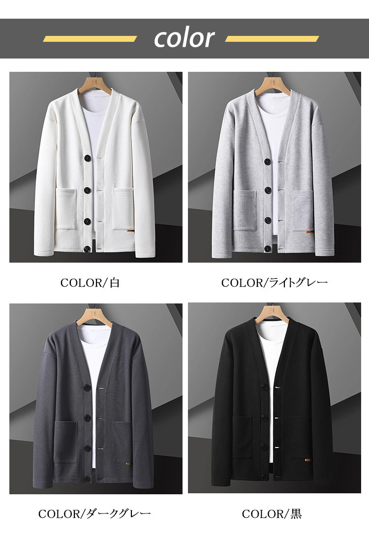 カーディガン メンズ 前開き ライトア メンズファッション 新作 M L XL 2XL 3XL 4XL 5XL 白 ライトグレー ダークグレー 黒