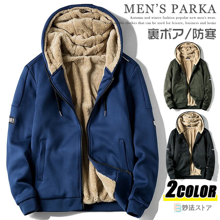 パーカー メンズ 長袖 裏ボアパーカー トップス パーカー 続々登場 M L XL 2XL 3XL 4XL 黒 オリーブ ブルー