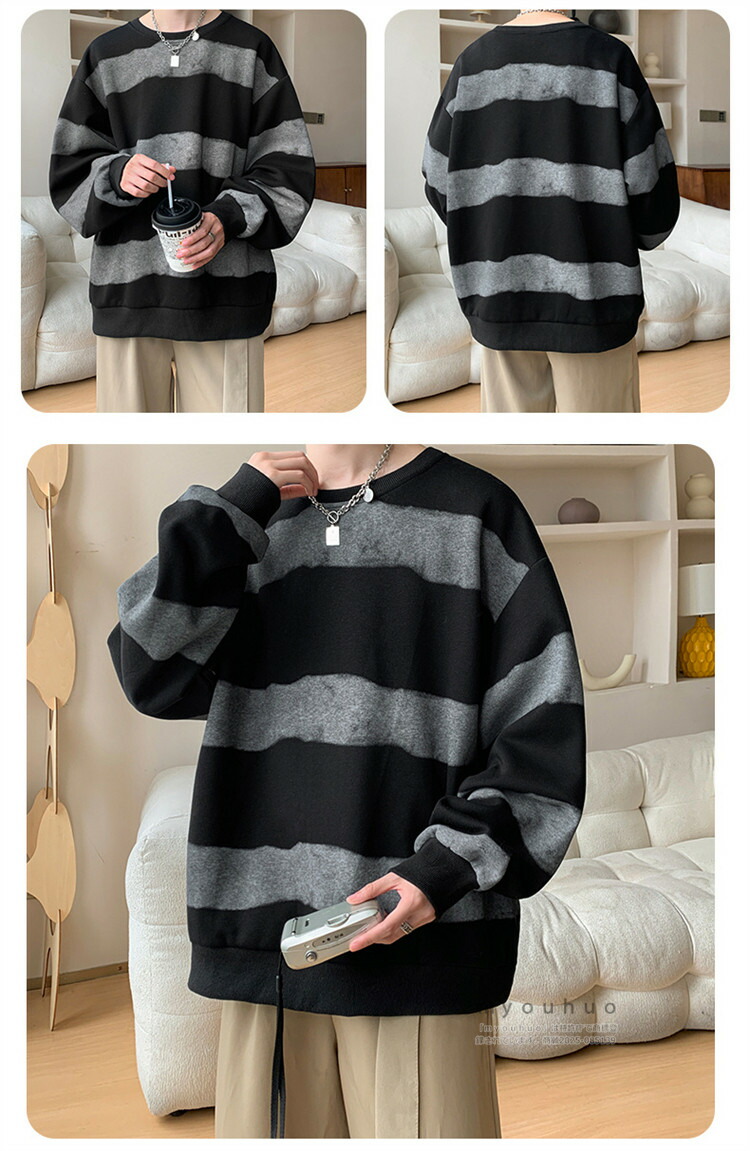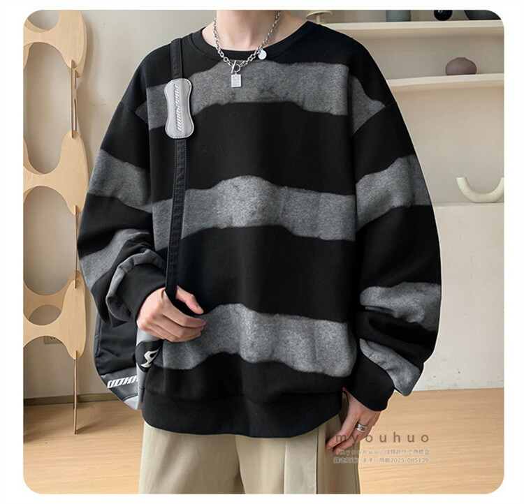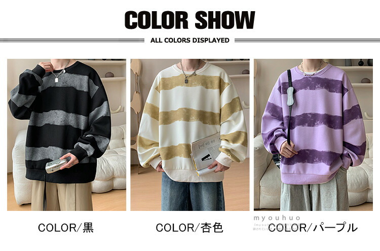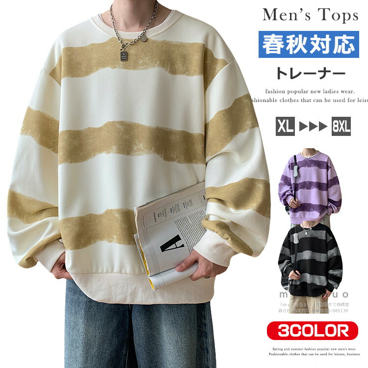 おしゃれ ボーダー柄 スウェット トレ トップス スウェット トレーナー 続々入荷中 XL 2XL 3XL 4XL 5XL 6XL 7XL 8XL 黒 杏色 パープル