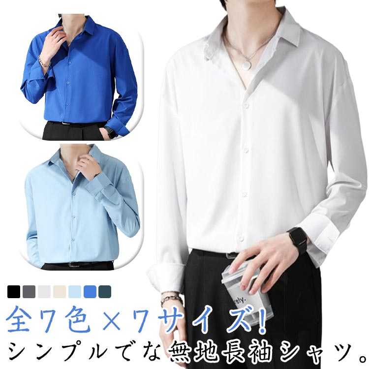 韓国風 メンズ ゆったり 全7色×7サイズ シャツ ファッション 無地 高級感 春 秋 冬 シワになりにくい