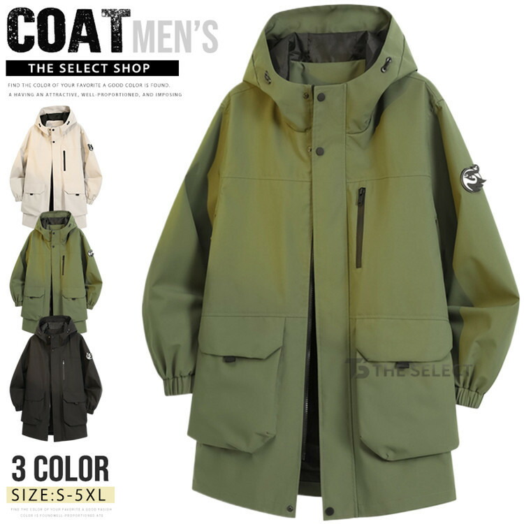 マウンテンパーカー メンズ ロングコート ウィンドブレーカー 大きいサイズ 撥水加工 ボリュームフード アウトドア おしゃれ ジップアップ パーカー ライトアウター 防風 アウター 通勤 通 ブルゾン