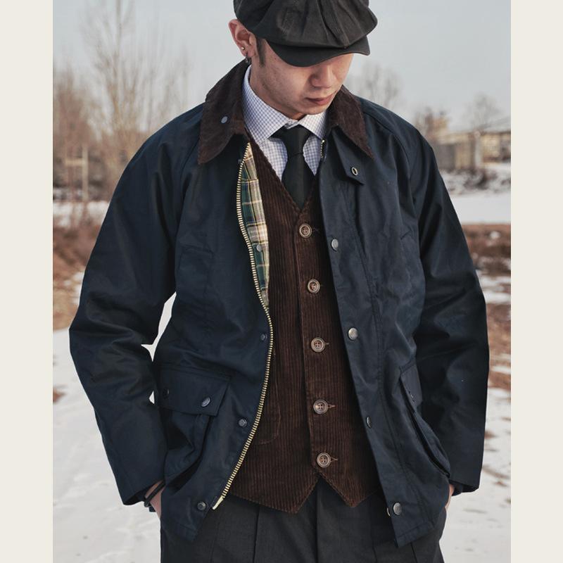 ジャケット メンズ 英国スタイル レトロ ハンティング ワークジャケット ワックスフリー 防水 防風 コットン 厚手 ミドル丈 マルチポケット カジュアル アウター ネイビー キャメル ダークグ 春秋