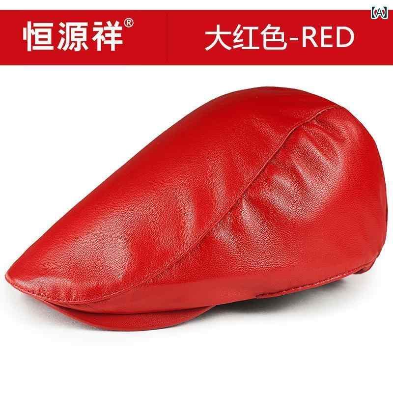ハンチング メンズ 帽子 革 春秋 薄手 レザー ベレー 中年 カジュアル レッド ブラウン ブラック 紳士