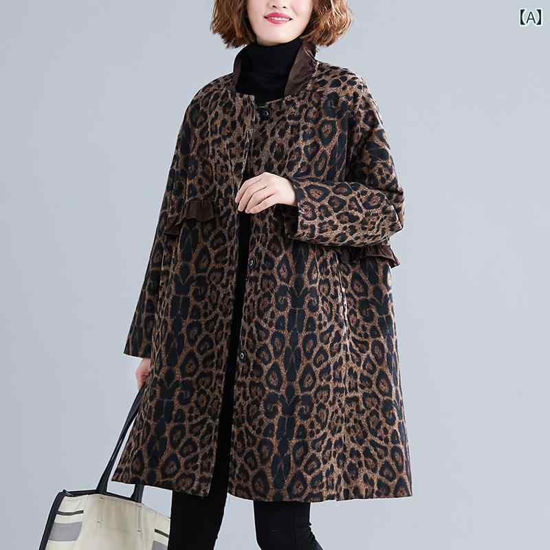 コート レディース アウター 秋冬 おしゃれ 大きい 韓国 ウール 厚手 ヒョウ柄 レオパード ミドル丈