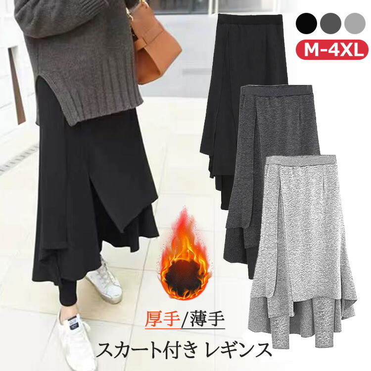 スカッツ レディース スカートレギンス スカート付きレギンス 体型カバー 2type 薄手 裏起毛 暖かい 微起毛 春 秋冬 あったか 防寒 寒さ対策 保温 ボトムス 防寒パンツ ウエ レギンスパンツ