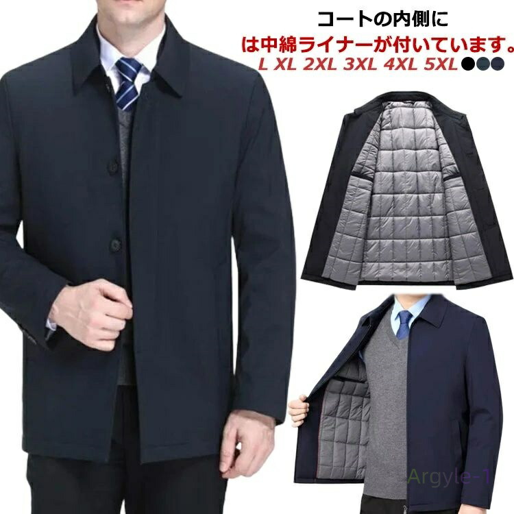 ジャケット 秋 裏キルティング ギフト あたっか 防寒 冬 暖かい 中綿コート ステンカラーコート ビジネス 厚手 ビジネスコート 中綿入り 無地 中綿ライナー付き アウター カジュ スプリングコート
