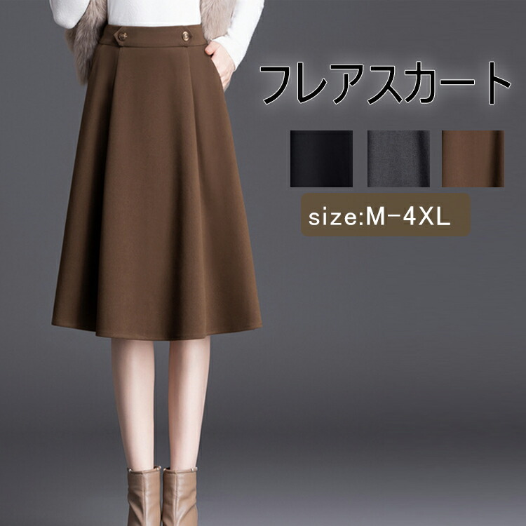 スカート レディース フレアスカート ひざ丈 膝丈 フレア 秋 冬 オフィス カジュアル ボトムス 大きいサイズ ロングスカート 細見え 楽チン 秋冬 30代 40代 50代 20代