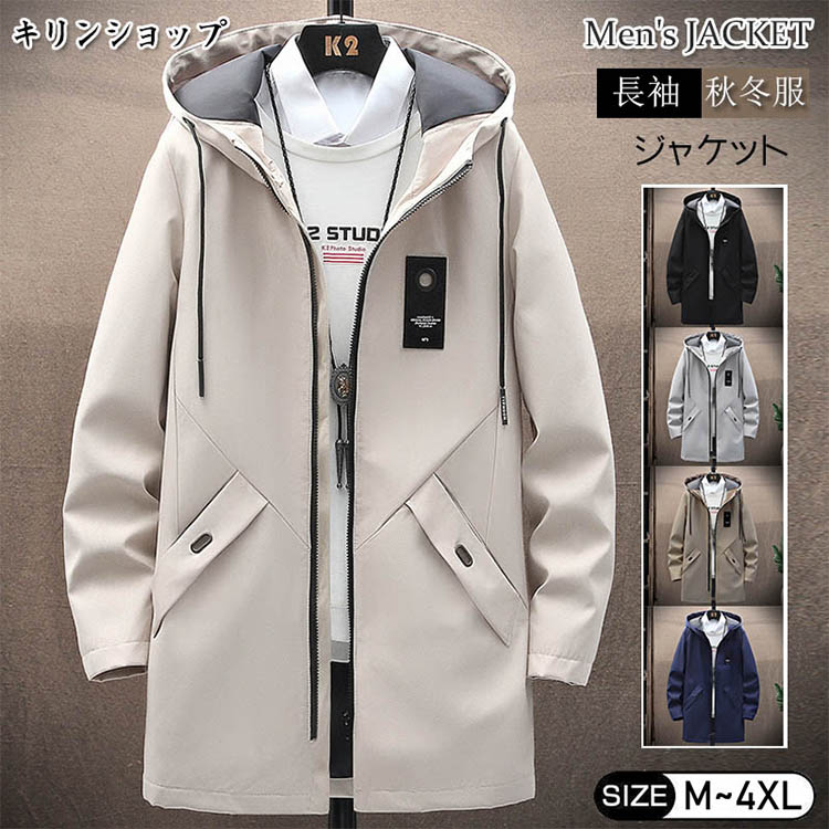 マウンテンパーカー メンズ ロング ウィンドブレーカー ロングコート ジャケット おしゃれ 無地 裏起毛 大きいサイズ 秋冬 アウトドア ボリュームフード ロングジ ファッション