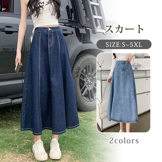 デニムスカート ロング フレア レディース ボトムス おしゃれ かわいい 無地 Aライン 旅行 トレンド ゆったり 普通着 体型カバー ファッション 春夏秋冬 お出かけ