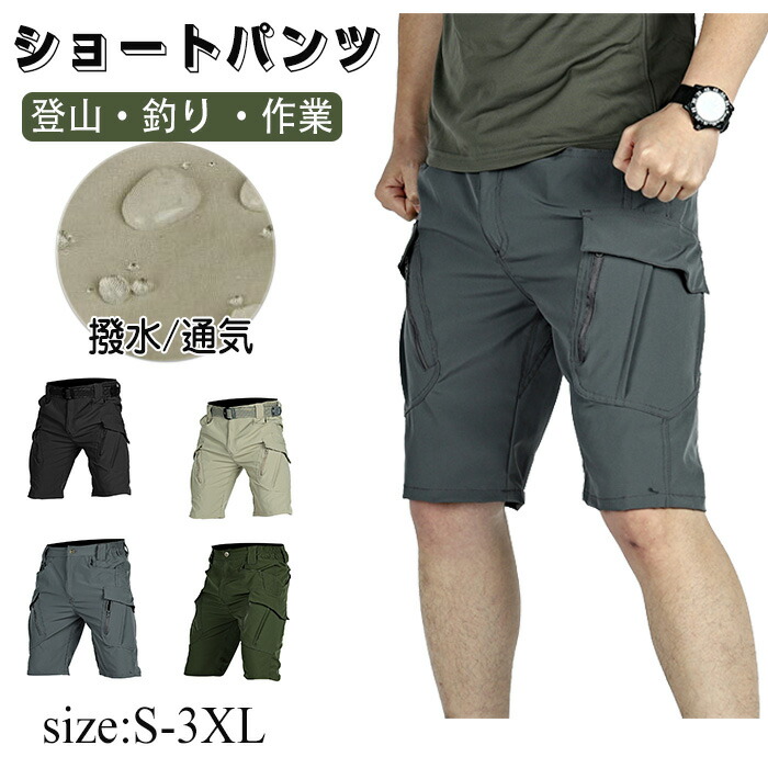 アウトドアショートパンツ メンズ 速乾 撥水性 半ズボン 通気 ショートパンツ マルチポケット ハーフパンツ 旅行 登山 釣り 作業 短パン 夏 カーゴパンツ ズボンメンズ 伸縮性 速 パンツ