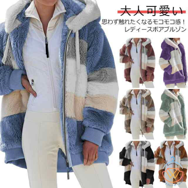 ボアブルゾン もこもこ あったかい アウター コート レディース 冬 ボア ジャケット フード付き パーカー 防寒 もこもこ ジップ あったか フード オーバーサイズ