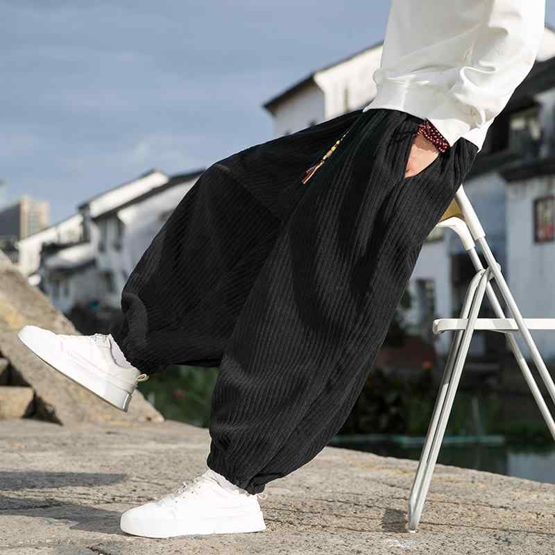 サルエルパンツ ニッカポッカ メンズ カジュアル ワイド ポケット ロングズボン 伸縮性 おしゃれ アウトドア ファッション コーデュロイ 厚手 ジョガー 中腰ボトムス 冬