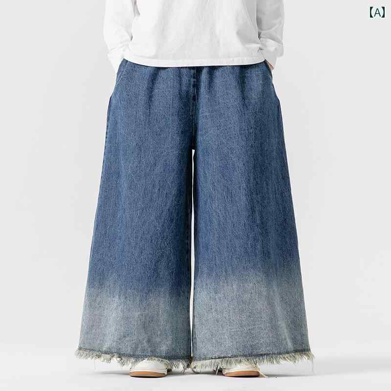 袴風 パンツ ユニセックス ロング レトロ グラデーション ワイドレッグ 大きいサイズ デニム ゆったり ルーズフィット ラフ リラックス