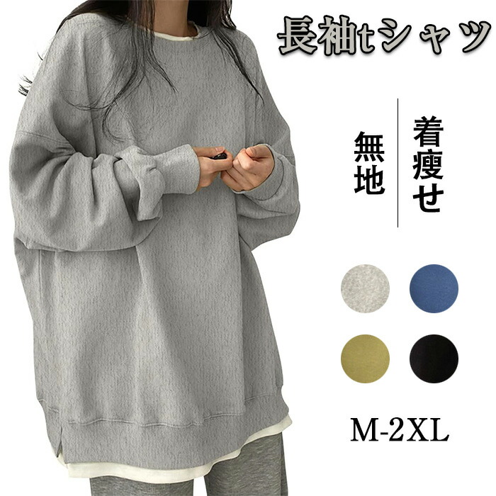 トレーナー レディース 長袖 トップス オーバーサイズ 着瘦せ 重ね着風スウェット 体型カバー 大きいサイズ ゆったり レイヤード スリット 綿 着回し ビッグシルエット 無地 おしゃれ カジュアル