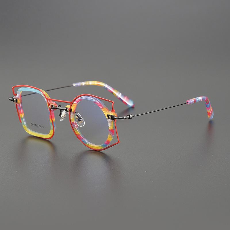 メガネフレーム メンズ 男性用 超軽量 フルリム ラウンドフレーム レトロ おしゃれ ユニークデザイン 純チタンフレーム 樹脂レンズ 近視対応 マルチカラー パープルピンク パープ ブルーライトカット