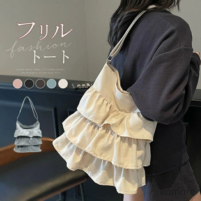 ショルダーバッグ レディース トートバッグ フリル キャンバス 帆布 バッグ 縦型 トート 肩掛け 大容量 通勤 通学 斜めがけ
