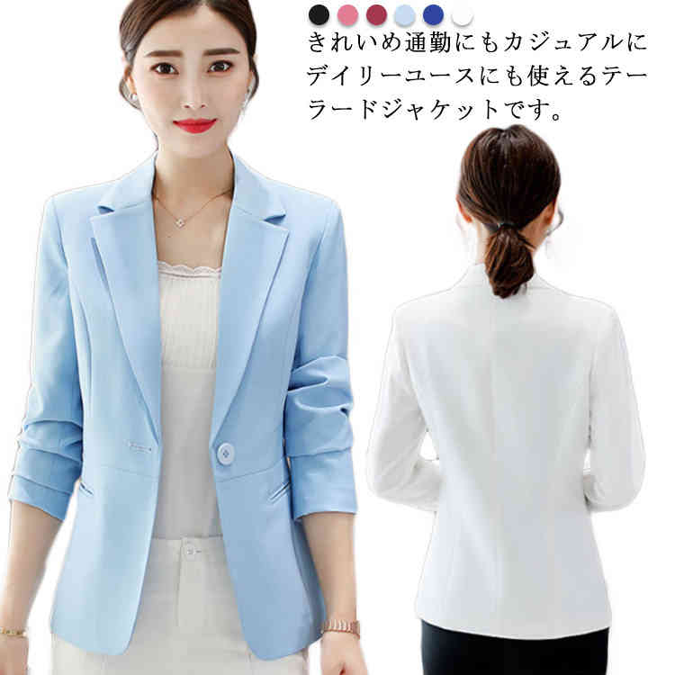スリム 春秋 ショート丈 ビジネス テーラードジャケット ブレザー 発表会 フォーマル レディース アウター 着痩せ 大きいサイズ スーツ 入学式 卒業式 卒園式 無地 黒 ブラック ピンク ホワ 白