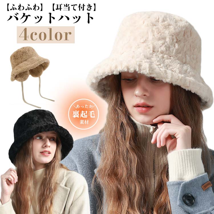 バケットハット 耳あて付き レディース 冬 ふわふわ もこもこ ファー帽子 ハット イヤーマフ フェイクファー 防寒 あったか おしゃれ かわいい 耳当て 紐 調節 韓国 コーデ イアマフ デイリー