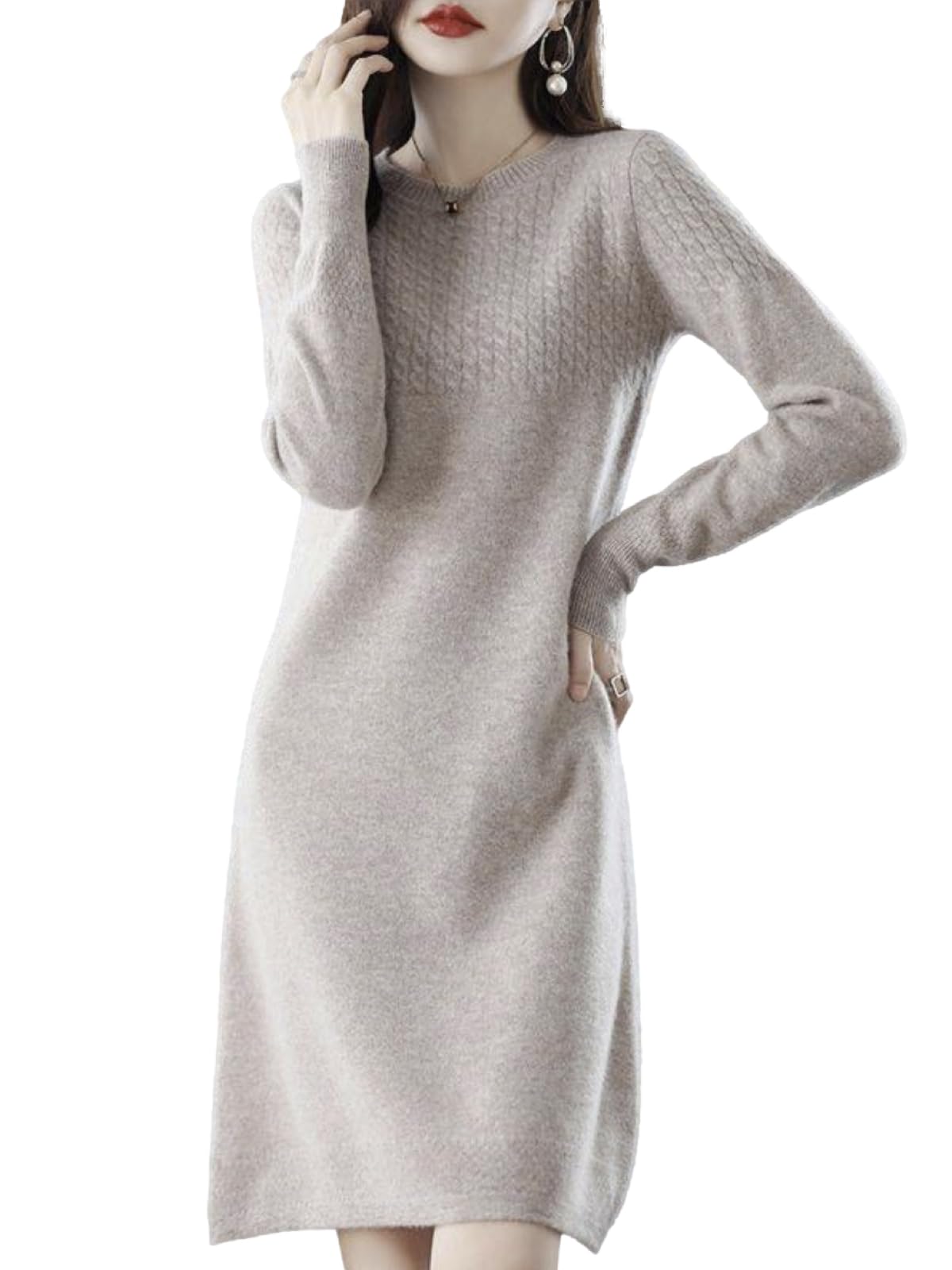 ワンピース レディース 秋 冬 ニットワンピース きれいめ 膝丈 長袖 255レディースファッション クルーネック