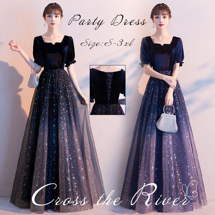 ドレス 大人 ピアノ 発表会 高校生 パーティードレス 韓国 ロングドレス 演奏会用 黒 結婚式 ワンピース おしゃれ 中学生 膝丈 マキシ丈 キラキラ イブニング 袖あり カクテルドレス レデ 星空