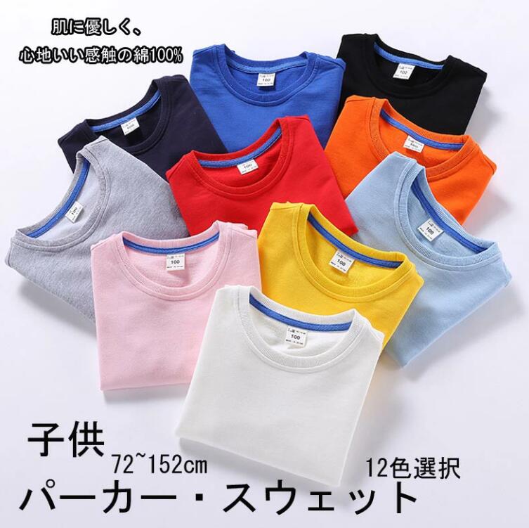 綿100%の無地トレーナー 男の子 女の子長袖 スウェット