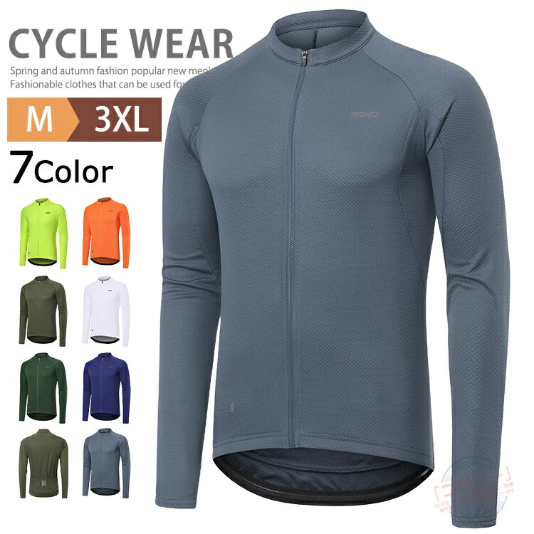 サイクリングウェアバイクウェア長袖シャツジップシャツゴルフウェアおしゃれジョギング薄手無地