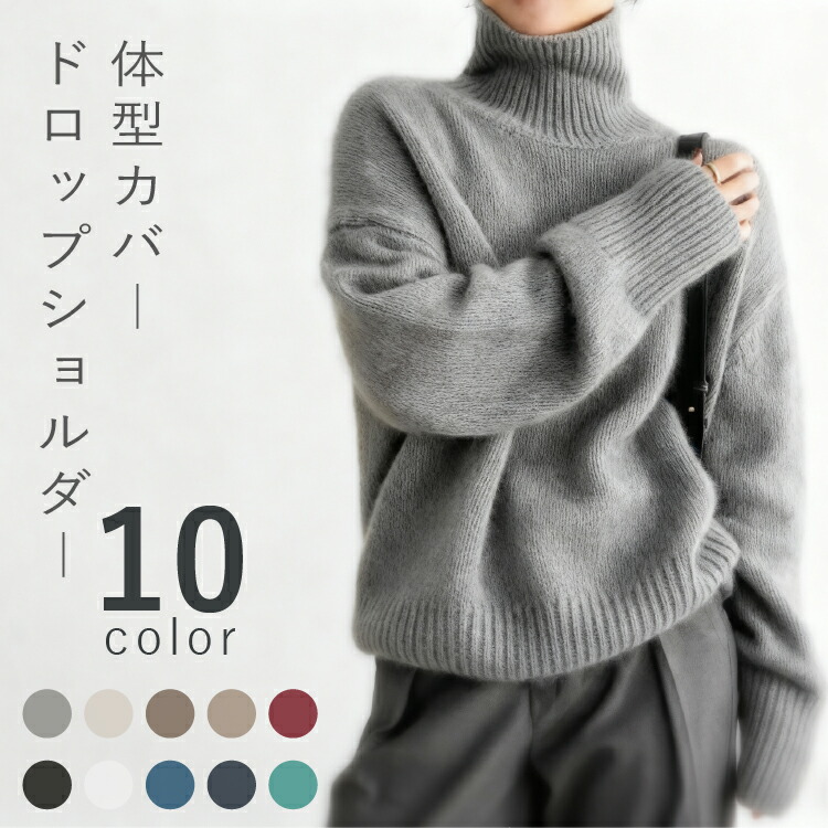 カシミヤタッチ 小顔効果 体型カバー オシャレ】ニット レディース タートルネック タートルニット 大きい オフィス ボトルネック セーター トップス ハイネック 冬 可愛い ゆったり 秋