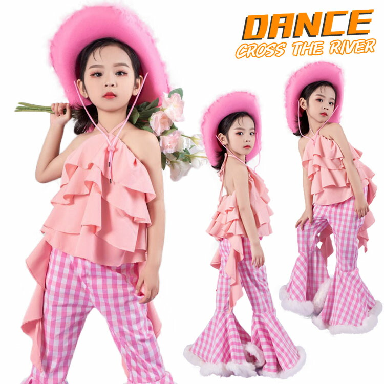 チェック柄 キッズダンス衣装 セットアップ フレアパンツ シャツ パンツ アイドル 衣装 ヒップホップ ジュニア 女の子 パンタロン ズボン フリル 中学生 hiphop ジャズダンス キッズ 小学生