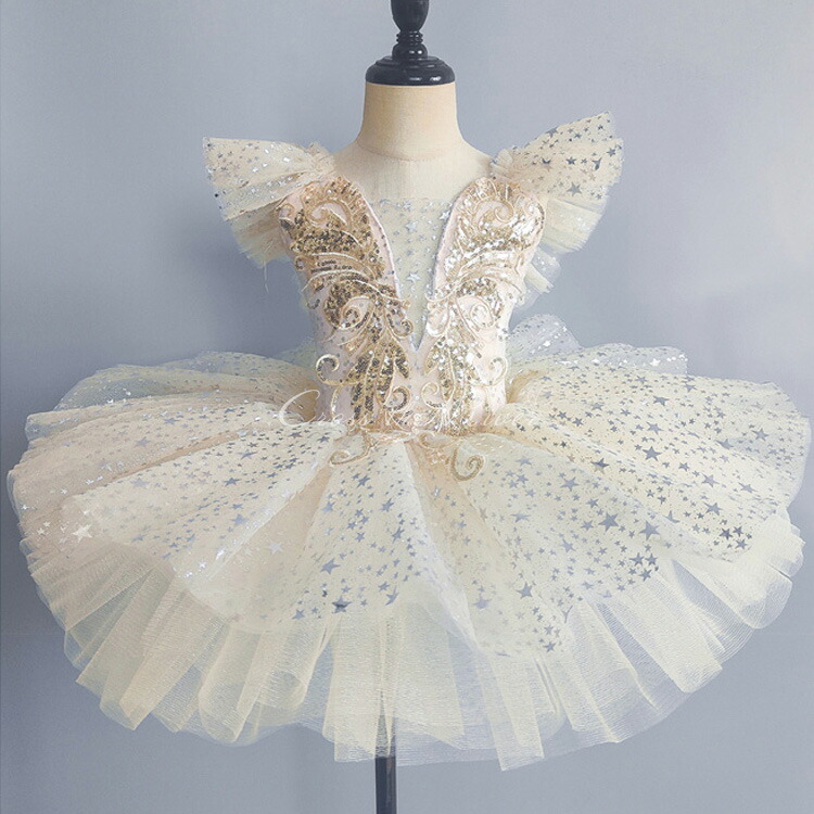 バレエ チュチュ ダンス衣装 キッズ パンツ付き スパンコール 演出 キラキラ 女の子 バレエスカート 星柄 かわいい チュールスカート ダンス服 こども ガールズ クラシックチュチュ 子供