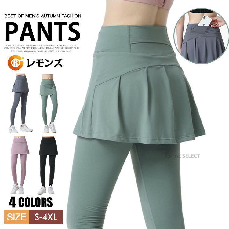 ヨガウェア 通気性 おしゃれ かわいい ホットヨガ ジムウェア スカート付きレギンス