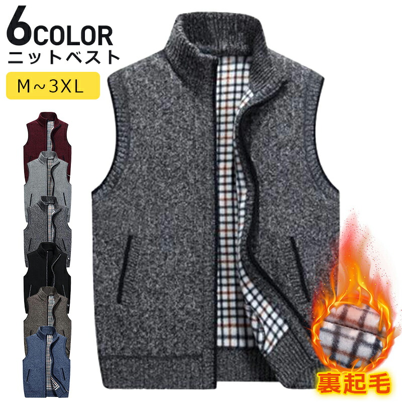 ニットベスト メンズベスト 裏起毛 厚手 カジュアル スタンド アウター 防寒 あったか セーター ビジネス オフィス 新生活 秋冬