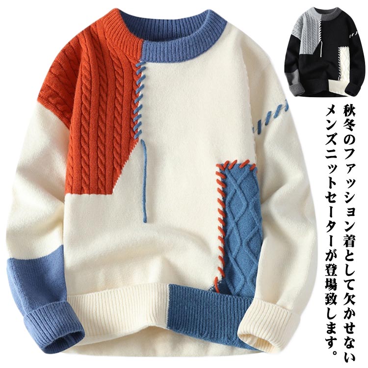 セーター メンズ ニットセーター クルーネック 長袖 ニット トップス プルオーバー リブ編み 秋冬 インナー