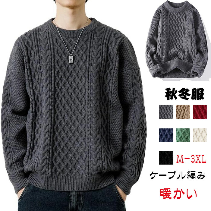 セーター メンズ 冬服 ニット クルーネック 厚手 冬 トップス カジュアル 大きいサイズ 暖かい 無地 ケーブル編み ビジネス 長袖 防寒着 秋冬 丸首