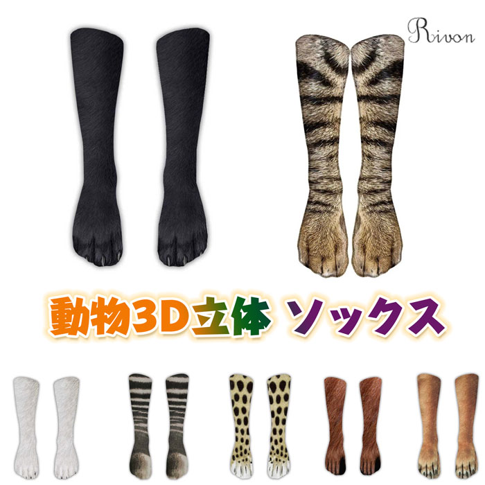 動物ソックス 動物3D立体 ソックス 靴下 動物の足 3Dプリント 学園祭 動物足跡ソックス ノベルティ クレイジー 猫 犬 トラ 足跡 楽しい ギフト レディース メンズ 防寒 プレゼント