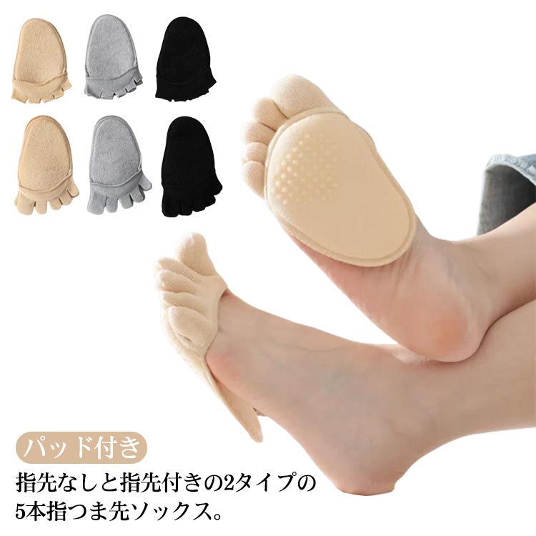 つま先靴下 用 5本指 指先付き つま先カバー 足裏保護パット 浅履き 歩きやすい 指先なし 2足セット パンプス サンダル つま先ソックス ミュール ソックス 蒸れない 脱げない 吸汗性 パッド付き