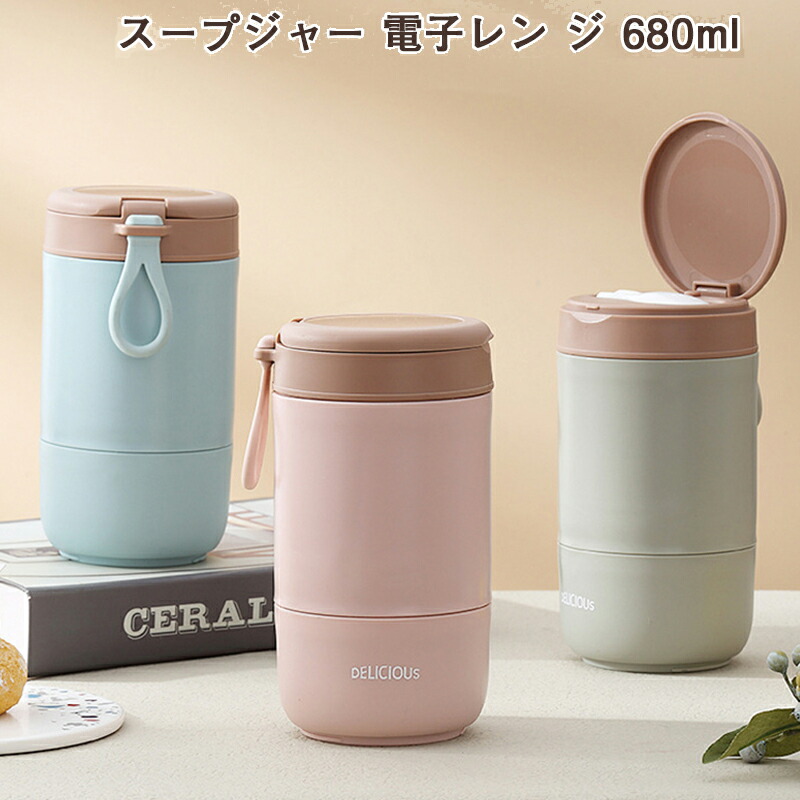 レンジ対応 スープジャー 電子レンジ スープ缶 680 ランチスープジャー 電子レンジ対応 お手入れ簡単 フタ内蔵 カトラリー便利で衛生的 持ち運びハンドル 簡単取り
