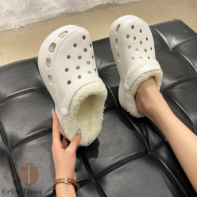 もこもこ 厚底 クロックス風 レディース サンダル 5cm ミドルヒール ラウンドトゥ ふわふわ ボア 防寒 裏起毛 かわいい 大人可愛い 暖かい