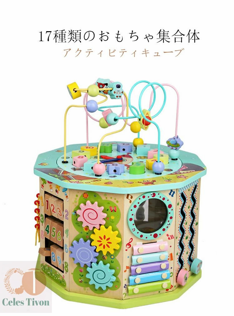 知育玩具 木のおもちゃ アクティビティキューブ 赤ちゃん 積み木玩具 木製パズルボックス 子供 男の子 女の子 1歳 17合1多機能宝箱