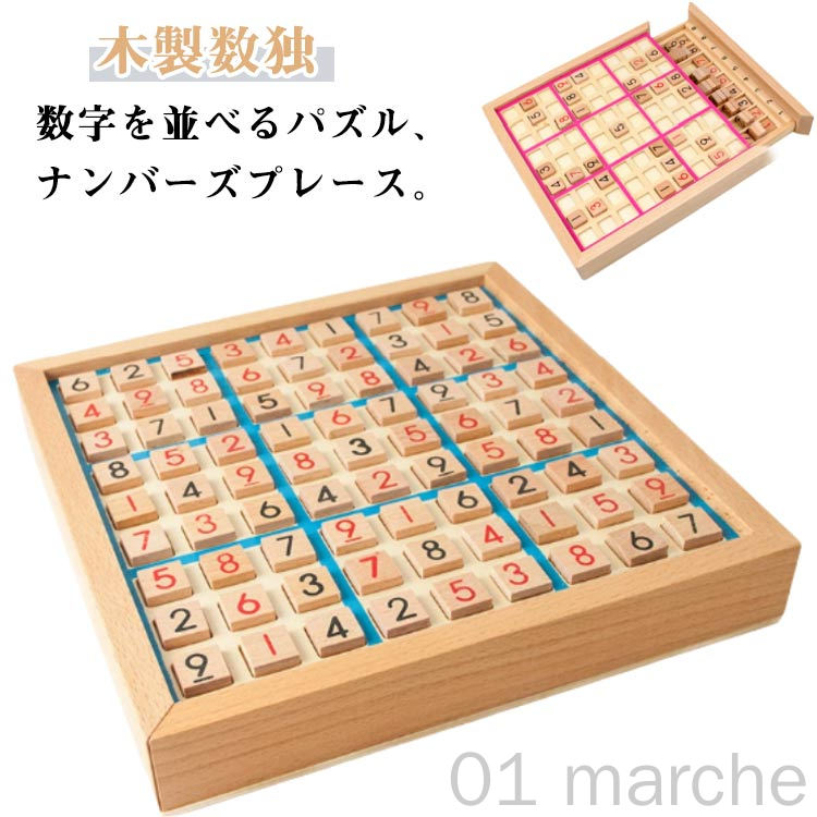 木製の脳トレ数独パズル問題集 繰り返し使える引き出し付きセット 初級から上級まで対応の知育玩具で家族みんなに最適