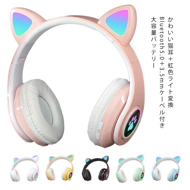 猫耳ヘッドホン 子供用 ヘッドホン Bluetooth5.0 LED付き ワイヤレス マイク内蔵 折り畳み式 音量制御 聴力保護 コンパクト 柔軟 かわいい iPad スマホ ノートパソ iPhone