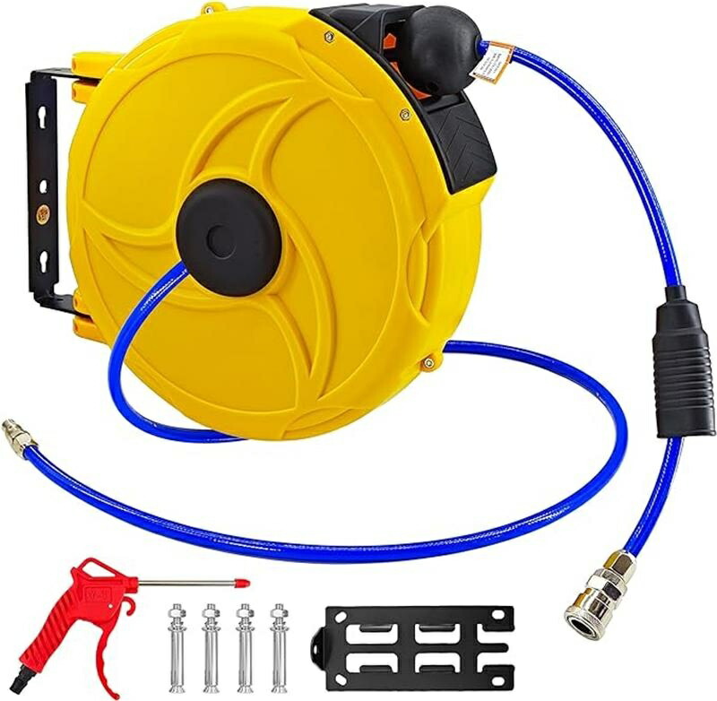 エアーホースリール 15m 自動巻取式 エアホースリール 自動巻き上げ 壁掛け 吊り下げ 天吊可能 180°回転可能 持ち運び使える 伸縮式スプリング エアホース 外径φ10mm×内径6 ホースリール