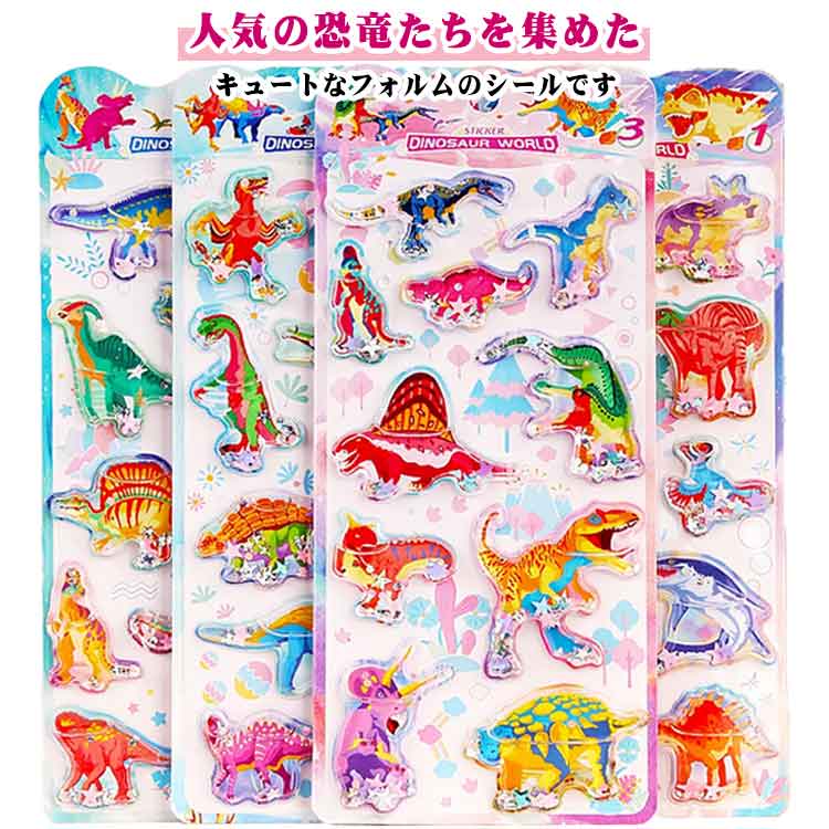 恐竜シール 4枚セット 3D シール 立体シール 可愛い ぷく 立体 泡ステッカー ステッカー ぷくぷくシール ぷっくりシール デコ ぷっくり ぷくぷく 手帳用 手作り 貼り付け DIY用