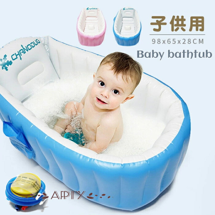 ビニールプール ベビーバスふかふかベビーバス プラス 空気入れポンプ付 滑り落ち防止 お風呂 沐浴 コンパクトバス ベビーバスタブ 折りたたみ
