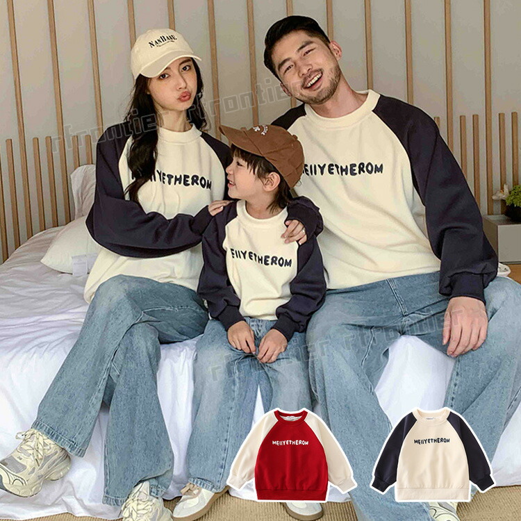 リンクコーデ 親子 セット 秋 親子コーデ トレーナー レイヤード 秋冬 ママ 娘 おそろい 長袖 ピンク ブルー ロンパース 赤ちゃん 可愛い こども服 ベビー