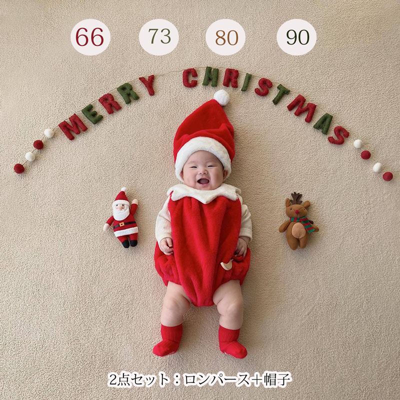 2点セット(ロンパース/帽子)ベビー&キッズ用のおしゃれなコスチューム♪クリスマス コスプレ、お誕生日プレゼントにも 出産祝い ギフト お着替え簡単 クリスマス66 73 80 90